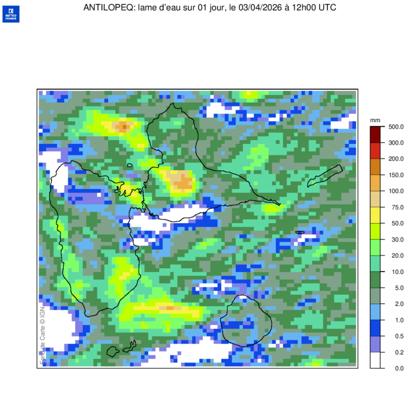 Pluies du 30 mars au 03 avril 2026 sur la Guadeloupe