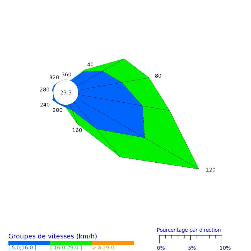 Les 4 premiers jours le vent est de secteur nord-est modéré sur toutes les îles. Mais par la suite, le vent est le plus souvent d'est à sud-est faible dans les terres et sur les côtes Sous-le-Vent et modéré sur le littoral au vent des îles. De rares rafales le plus souvent assez-fortes, sont observées sous les averses le long du littoral exposé au flux, surtout la deuxième semaine du mois. Elles sont temporairement et localement fortes à très fortes sous les orages qui touchent les îles du Nord en tout début de deuxième décade.