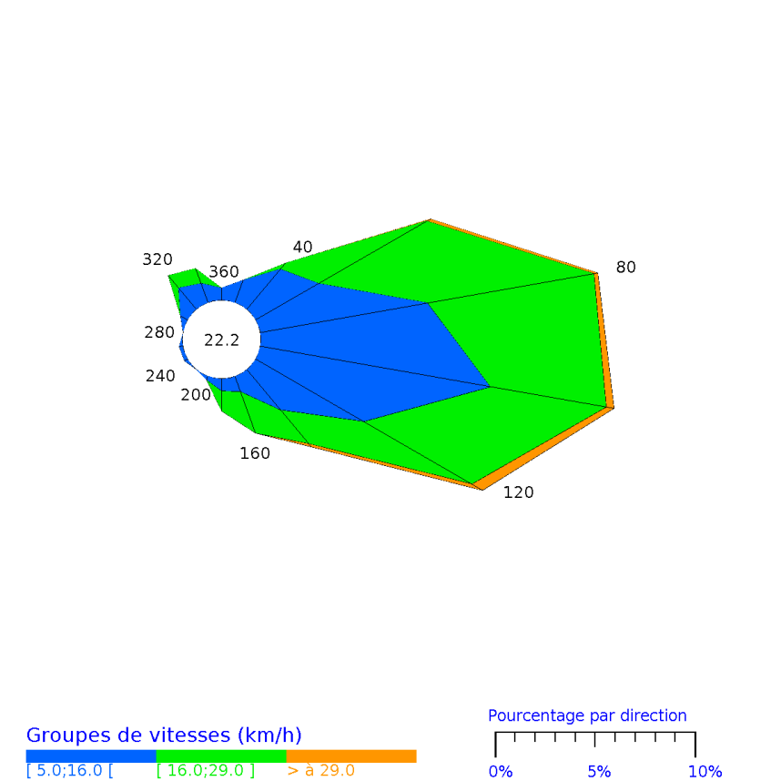 54 km/h de l’est à sud-est |
