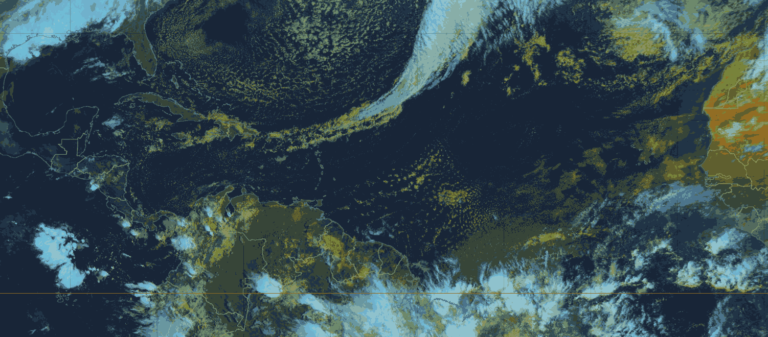 L'océan Atlantique: à l'est des Antilles, la température de surface de la mer est proche de la normale à légèrement anormalement fraîche. Plus au sud, la température des eaux équatoriales, encore un peu chaude devient elle aussi progressivement normale. Pour les 3 mois à venir, l'évolution tend vers des températures homogènes et proche des normales sur l'est de l'arc antillais et au large des Guyanes, et légèrement à encore chaudes au large du Brésil.