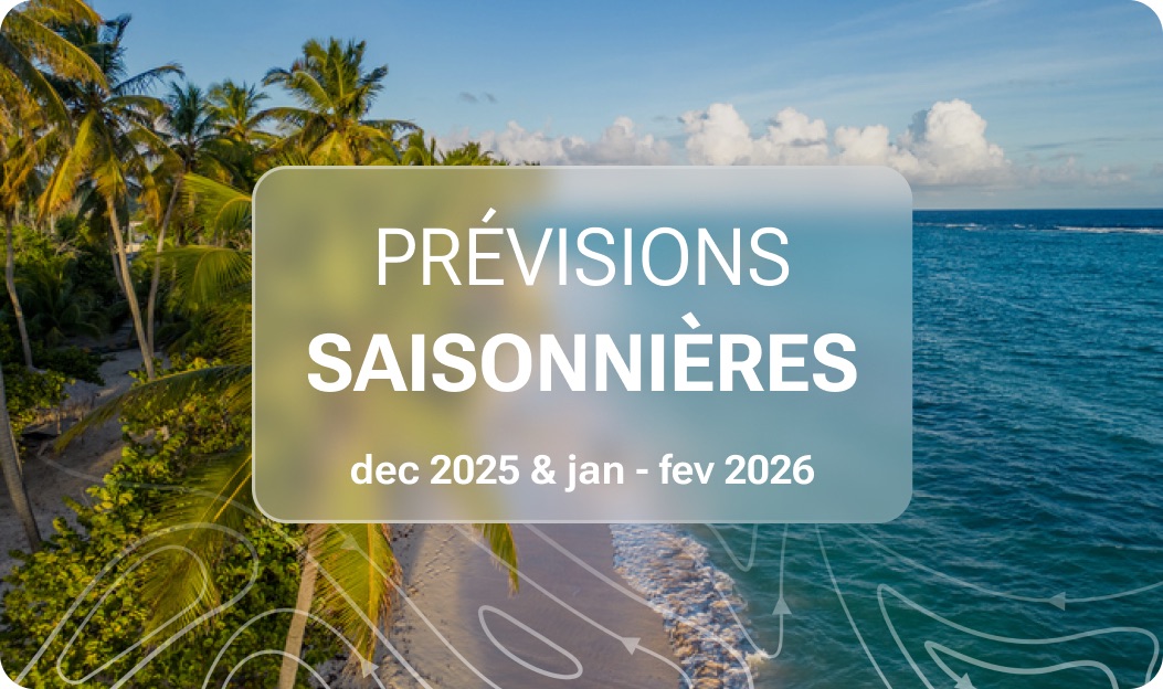 Pour les trois mois à venir, la tendance est toujours à un retour à des températures de surface de l'océan Atlantique tropical nord de saison après des mois d'anomalie positive autour des îles de l'arc des Petites-Antilles.
